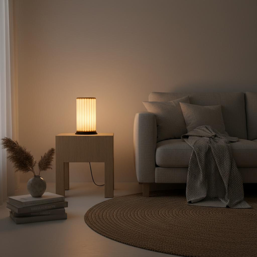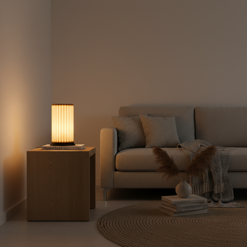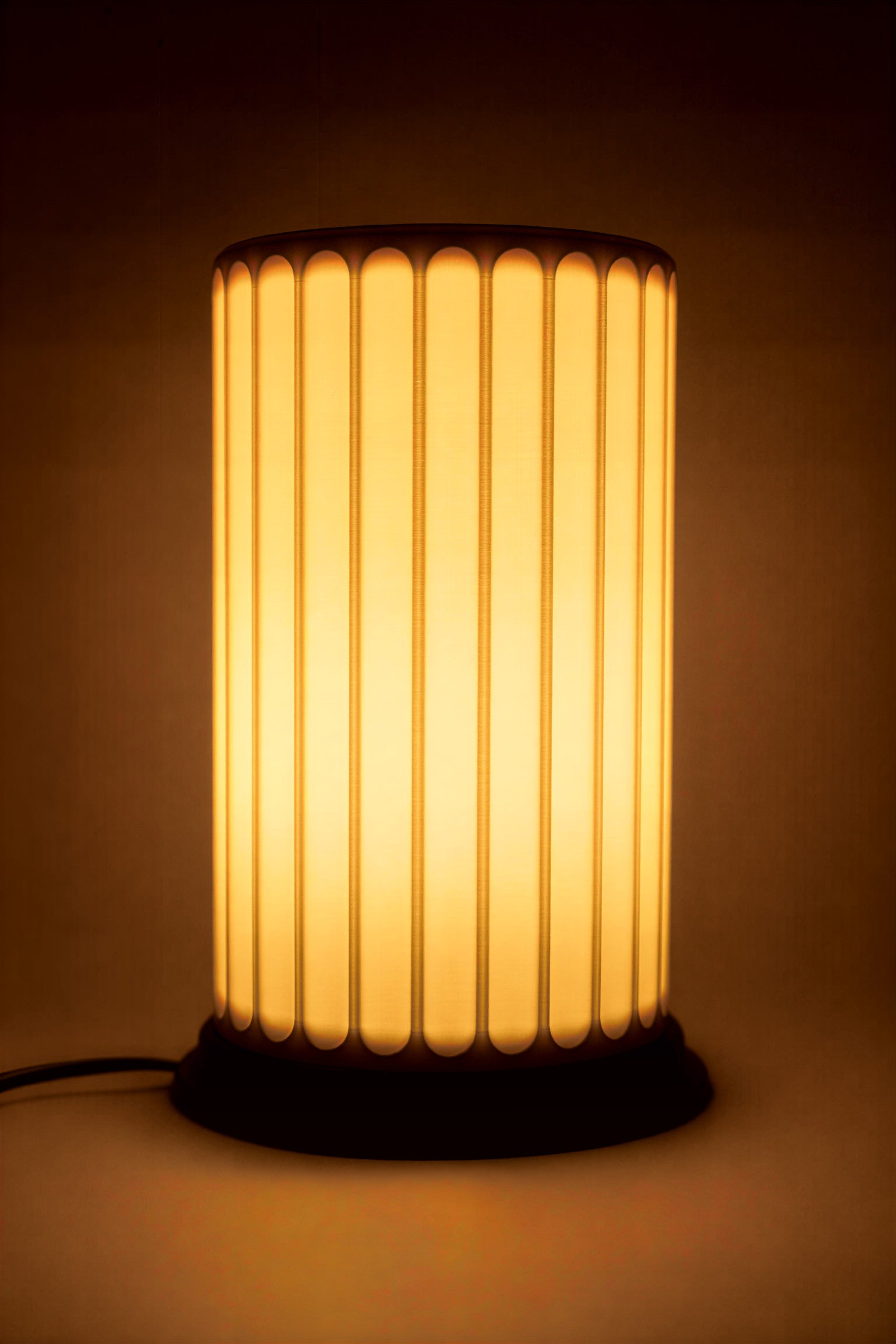 Osserva come la luce danza attraverso le sue scanalature verticali, creando un gioco d'ombre ritmico e una luminosità diffusa che trasforma ogni ambiente in un santuario di calma. La sua texture, delicatamente visibile, invita al tocco, evocando una sofisticata esperienza sensoriale che solo un pezzo di design autentico può offrire. Columna non è solo una lampada, è un punto focale che eleva lo standard del tuo spazio.